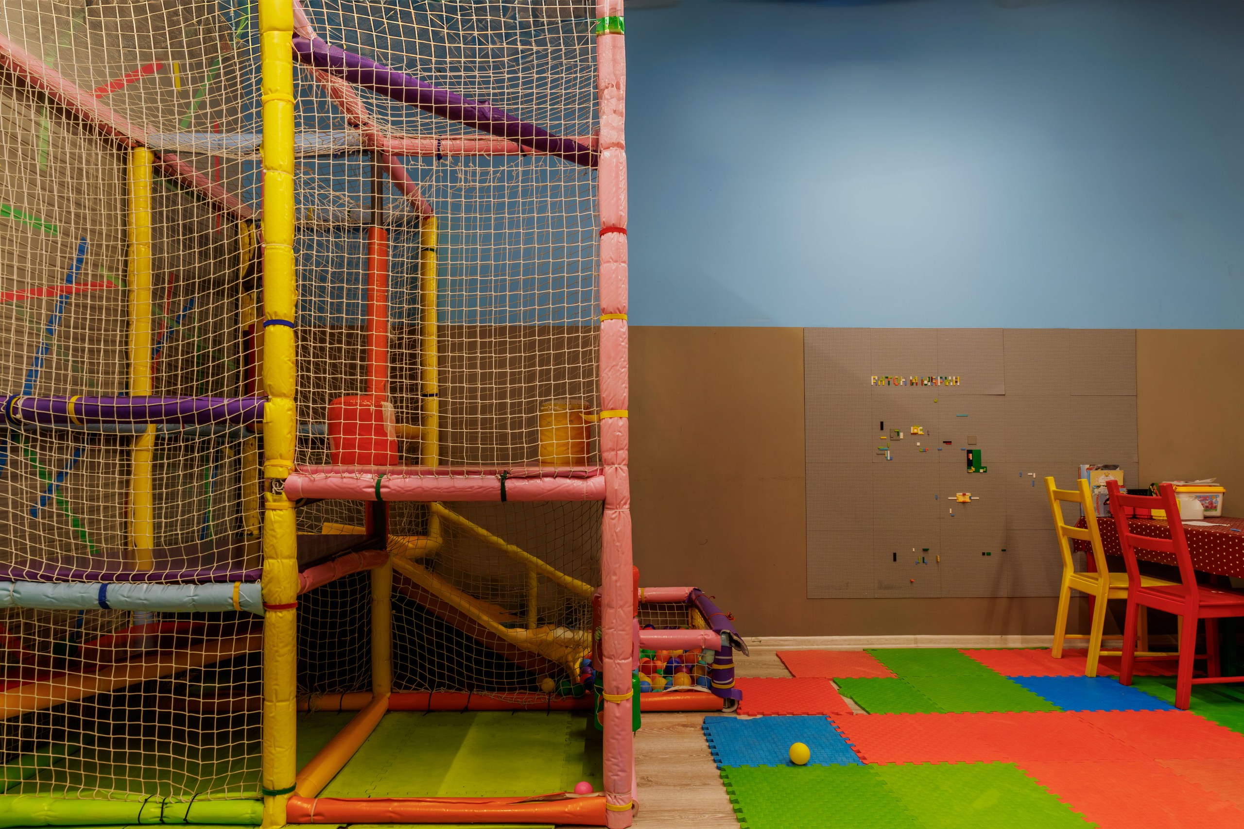 На территории комплекса расположена современная игровая комната с интерактивной стеной, в которой проводятся бесплатные мастер-классы по выходным, а также работает аниматор.